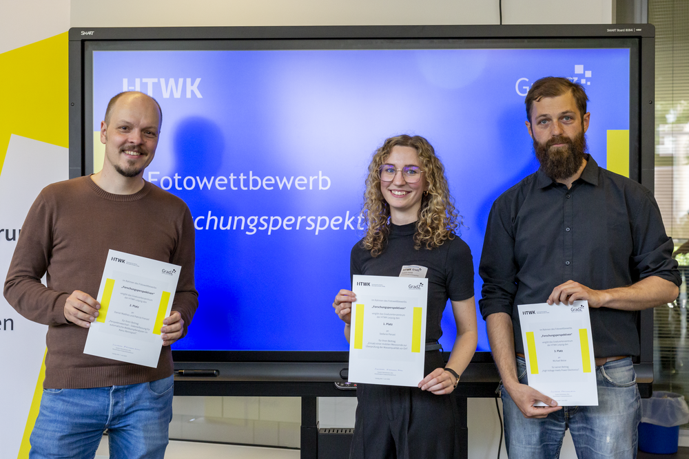Nach einem Empfang begrüßten Susann Hannemann, Koordinatorin des Graduiertenzentrums sowie Prof. Jens Jäkel, seit Bestehen des GradZ Mitgllied im wissenschaftlichen Beirat, die Besucherinnen und Besucher und verliehen die Preise im Rahmen des Fotowettbewerbs „Forschungsperspektiven“. In dem vom GradZ zum fünften Mal ausgelobten Wettbewerb waren Forschende dazu eingeladen, Einblicke in die wissenschaftliche Welt der HTWK Leipzig und in ihren persönlichen Forschungsalltag zu geben.